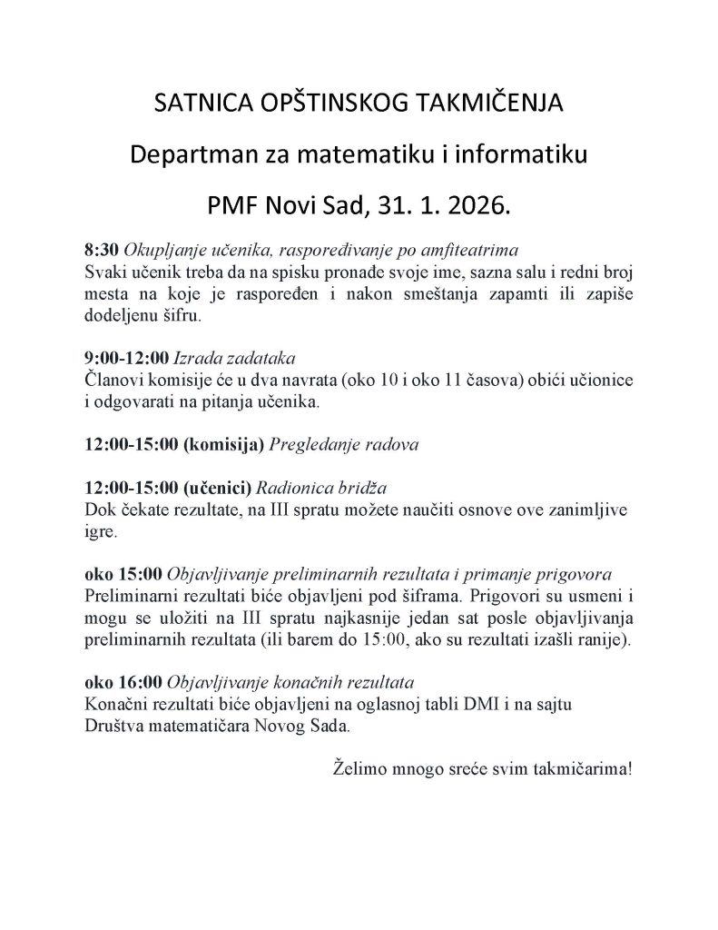 • Opštinsko takmičenje iz matematike za srednjoškolce na PMF NS!
